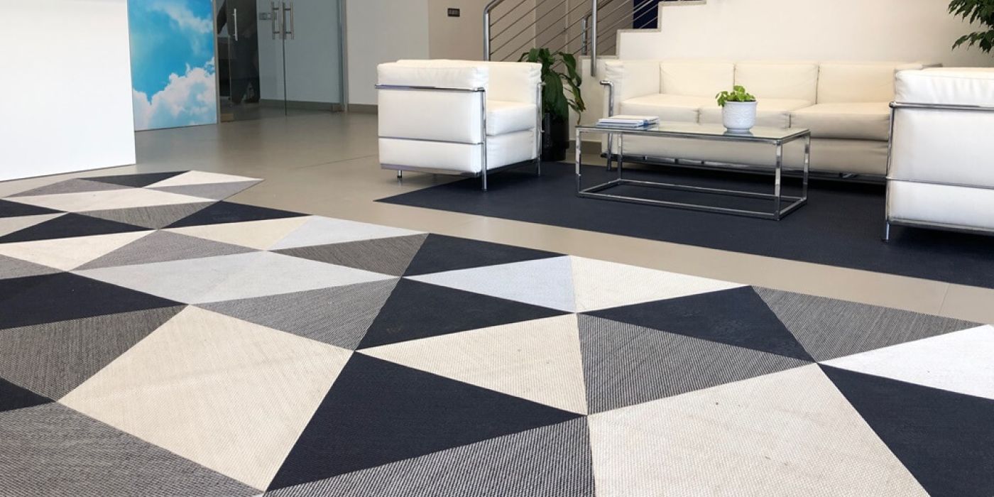 Recientemente, una importante empresa de Zaragoza nos encargó el diseño de una alfombra para el hall de entrada de sus oficinas. Nuestros puntos de partida para su diseño fueron tres: los colores corporativos de la marca, su vinculación al mundo de la ingeniería y las exigencias técnicas del espacio. ¡Todo un reto!