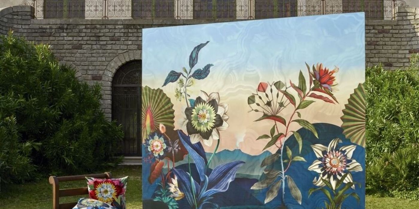 Esta temporada Christian Lacroix Maison nos sumerge en un mundo de fantasía recreando paisajes de ensueño, estilizadas glicinias y extravagantes escenas botánicas fieles a la esencia de la casa. Sus diseños de papel pintado se reproducen en tejidos, alfombras y otros complementos como cojines que llenarán de luz tu hogar.