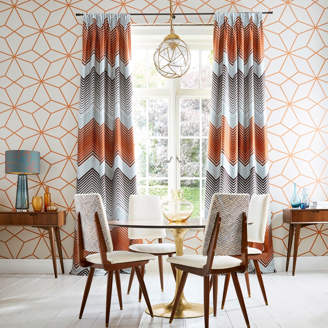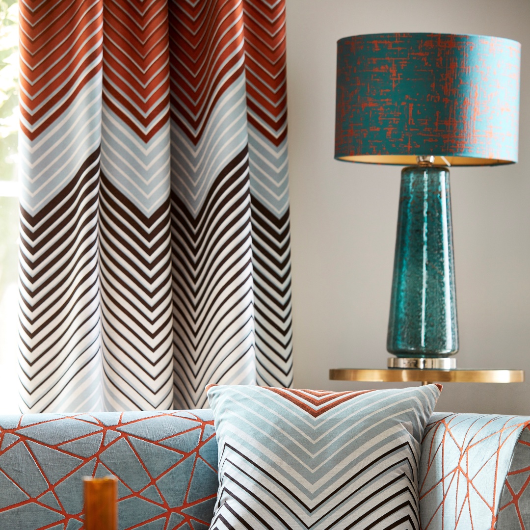 ¡Apuesta por los estampados geométricos, son pura tendencia! El tejido Equalize de Harlequin tiene un diseño de estampado en zig zag al estilo de los clásicos diseños de Missoni, combinando tonalidades cobre, azul porcelana y moka.