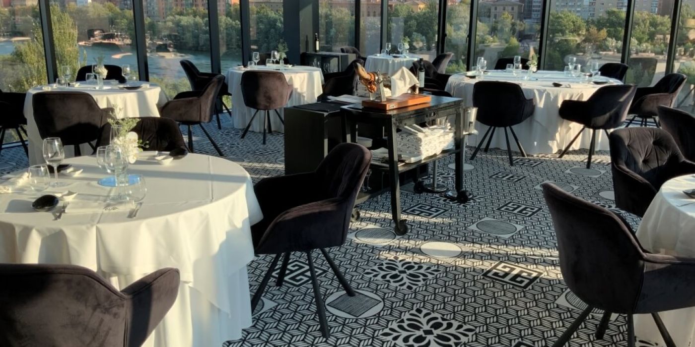 Ha sido un orgullo haber contribuido a la renovación de la imagen de uno de los locales más emblemáticos de Zaragoza, el Restaurante Aura. Este complejo, que ofrece un amplio abanico de propuestas lúdicas y gastronómicas -restaurantes, terrazas, discoteca, jardín con vistas al río Ebro-, necesitaba actualizar la moqueta de uno de sus espacios más vistosos.